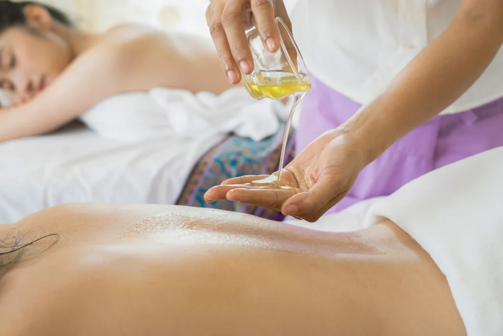 - Preparation – Herbal oils are gently warmed to a comfortable temperature. You settle into a calm treatment room, allowing your body and mind to relax before the massage begins.